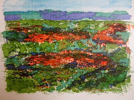 Acrylics are my preferred medium for painting. However, the creative process is not limited to just painting nor one medium, and in an effort to expand my competencies and increase the tools of expression available to me, I have started experimenting with producing monoprints using fabric dye and silkscreen.